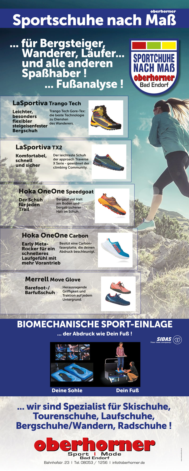 Natürlich mit Fußanalyse...Oberhorner, die Spezialisten für Skischuhe, Tourenschuhe, Laufschuhe,